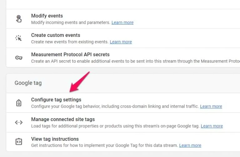 Step #3. Scroll down to the Google Tag section and navigate to the Configure Tag Settings block.