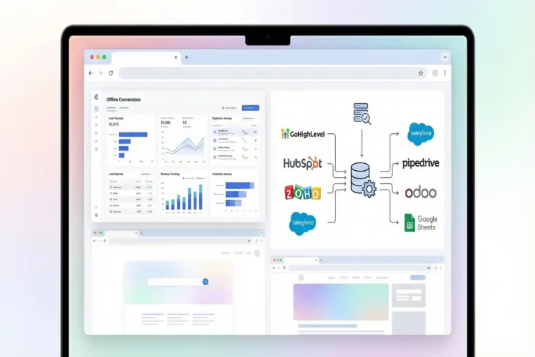 As a ROI Driven Conversion Tracking Specialist, I design and implement advanced Offline Conversion Tracking (OCT) systems that seamlessly connect your CRM—HubSpot, Zoho, GoHighLevel, Salesforce, Pipedrive, Odoo, or Google Sheets—with Google Ads, Meta Ads, and GA4. This ensures every offline sale is precisely attributed to the specific ad click that generated the lead.